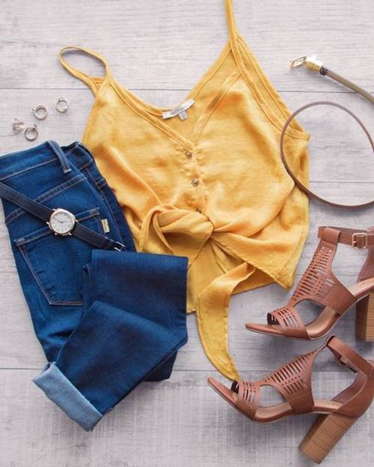ลองเลือกเป็นเสื้อครอป สายเดี่ยวหรือเสื้อกล้ามที่มีสีสันสดใสหรือสีที่ชอบมาใส่คู่กับรางเท้าผ้าใบ รองเท้าส้นสูง ก็ได้ลุคแต่งตัวที่ช่วยให้ลุคใส่กางเกงยีนส์ขากระบอกดูชิคและมีสไตล์มากขึ้นนะคะ