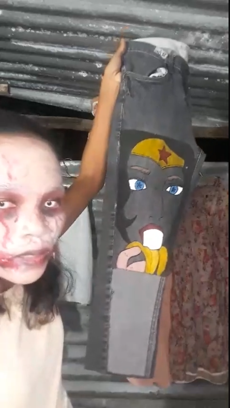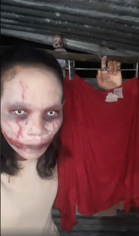 “กนิษฐา ทองมาก” อายุ 30 ปี อาชีพเพ้นต์กางเกงยีนส์เสื้อผ้ามือสอง และปั้นงานเครื่องประดับโพลิเมอร์ขาย สร้างความฮือฮาบนโลกโซเชียล ด้วยการ “แต่งหน้าเป็นศพ ไลฟ์ขายเสื้อผ้าคนตาย”