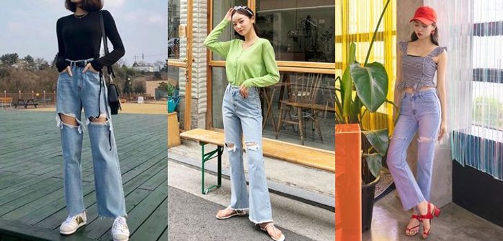 เลือกกางเกงยีนส์ขาบานขาดเข่านิดๆ ก็ได้สไตล์วัยรุ่น