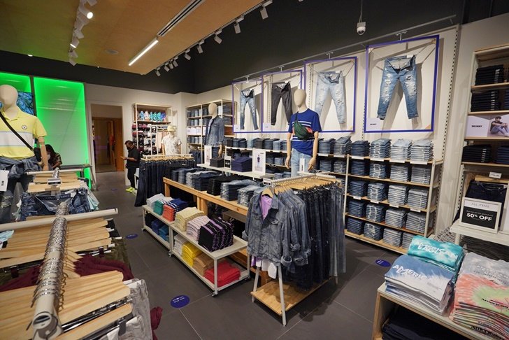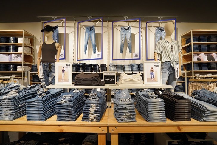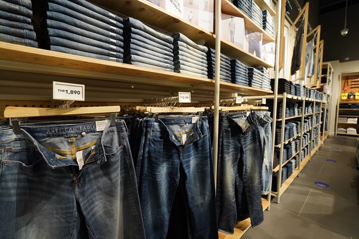 American Eagle ได้เนรมิตพื้นที่กว่า 200 ตร.ม. ให้เป็นอาณาจักรแห่งยีนส์ภายใต้คอนเซปต์ Jeans Destination ซึ่งถือว่าเป็นแห่งแรกในเอเซียตะวันออกเฉียงใต้ โดยให้สัดส่วนของสินค้าประเภทยีนส์มากถึง 80% ของร้าน มีกางเกงยีนส์กว่า 160 รุ่น แบ่งเป็นกางเกงยีนส์ผู้ชาย 80 รุ่น และกางเกงยีนส์ผู้หญิงอีก 80 รุ่น รวมทั้งหมดกว่าห้าพันตัว ไม่ว่าจะเป็นทรง Skinny jeans, Slim straight, Mom jeans, Boyfriend, Tom girl และอื่นๆ