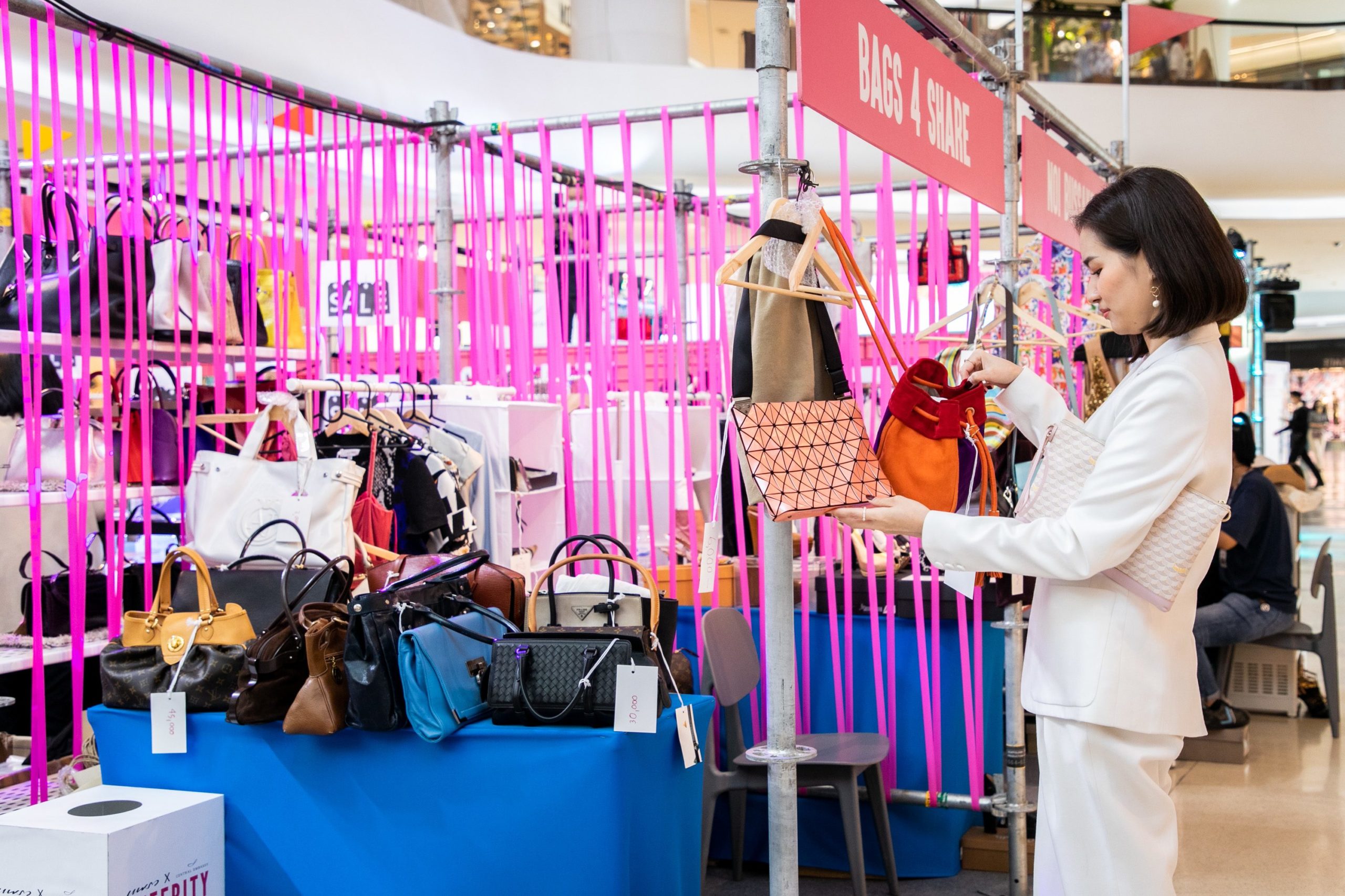อารีย์ นาคชัยยะ บอสสาวเจ้าของสมบูรณ์โภชนา ร่วมนำกระเป๋า แว่นตา เสื้อผ้าแบรนด์เนมมาออกร้าน เล่าว่า ชิ้นเด็ดที่นำมาวางขายครั้งนี้ คงเป็นกระเป๋าหลุยส์ใบโปรด ที่ได้มาตั้งแต่ยังไม่แต่งงาน มีสตอรี่มากมายเพราะให้คุณสามีที่ไปทำงาน ไปต่อแถวซื้อให้ถึงฝรั่งเศส แต่ก็ขอตัดใจส่งต่อ ทั้งยังได้ของเพื่อนๆ มาร่วมสมทบ รวม 40 กว่าชิ้น แม้ว่าจะรักกระเป๋ามาก เหมือนผู้หญิงทุกคน จะตัดใจก็ยาก แต่ก็คิดว่าจะได้ให้คนอื่นที่ชื่นชอบรับไปใช้ต่อ คงได้ประโยชน์มากกว่า ทั้งยังนำรายได้มอบให้คนที่เดือดร้อน