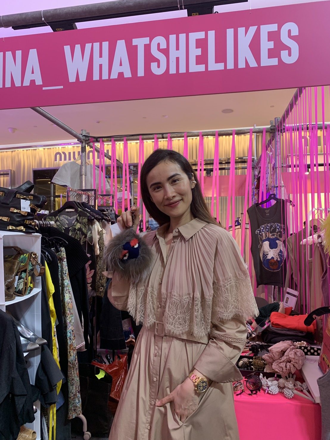 พิธีกรเซเลบริตี้คนดังอย่าง จุ๊-นาขวัญ รายนานนท์ ก็ขนเอาชุดออกงานแบรนด์ไทยเลิศๆ กว่า 100 ชุด มาส่งต่อในราคา 500-1,500 บาท